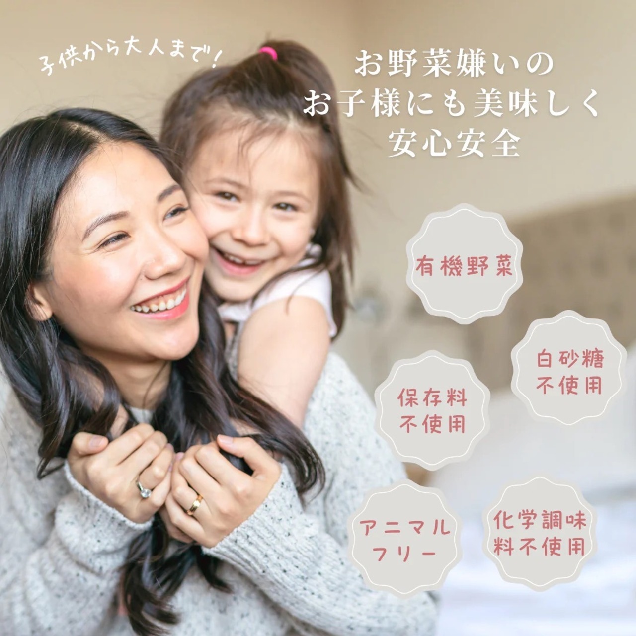 グルテンフリー・人工甘味料不使用で、子どもから大人まで安心してお召し上がりいただけます。