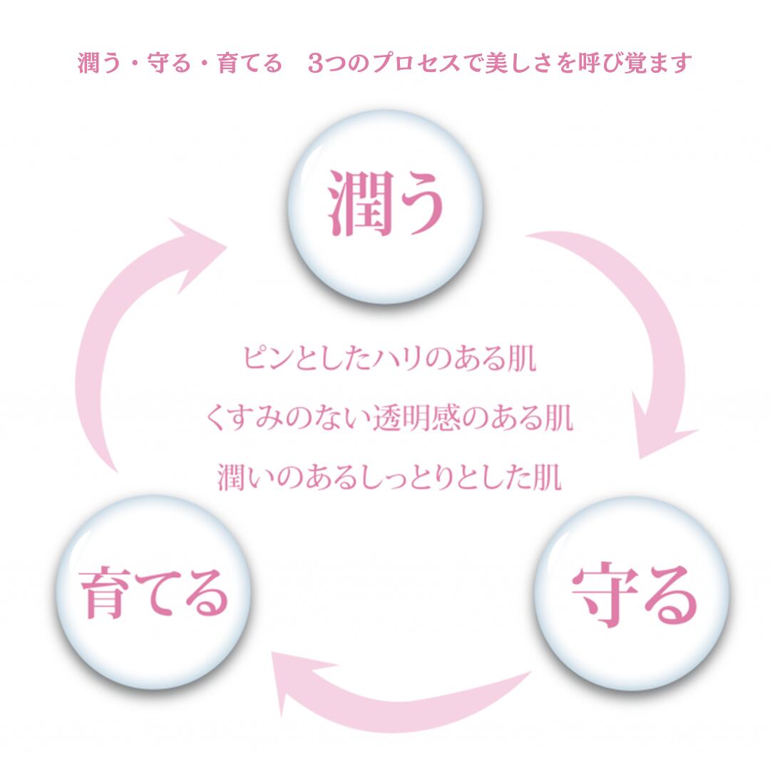 「潤う・守る・育てる」3つのプロセスで、肌本来の美しさを引き出し、みずみずしく健やかな肌へ整えます。